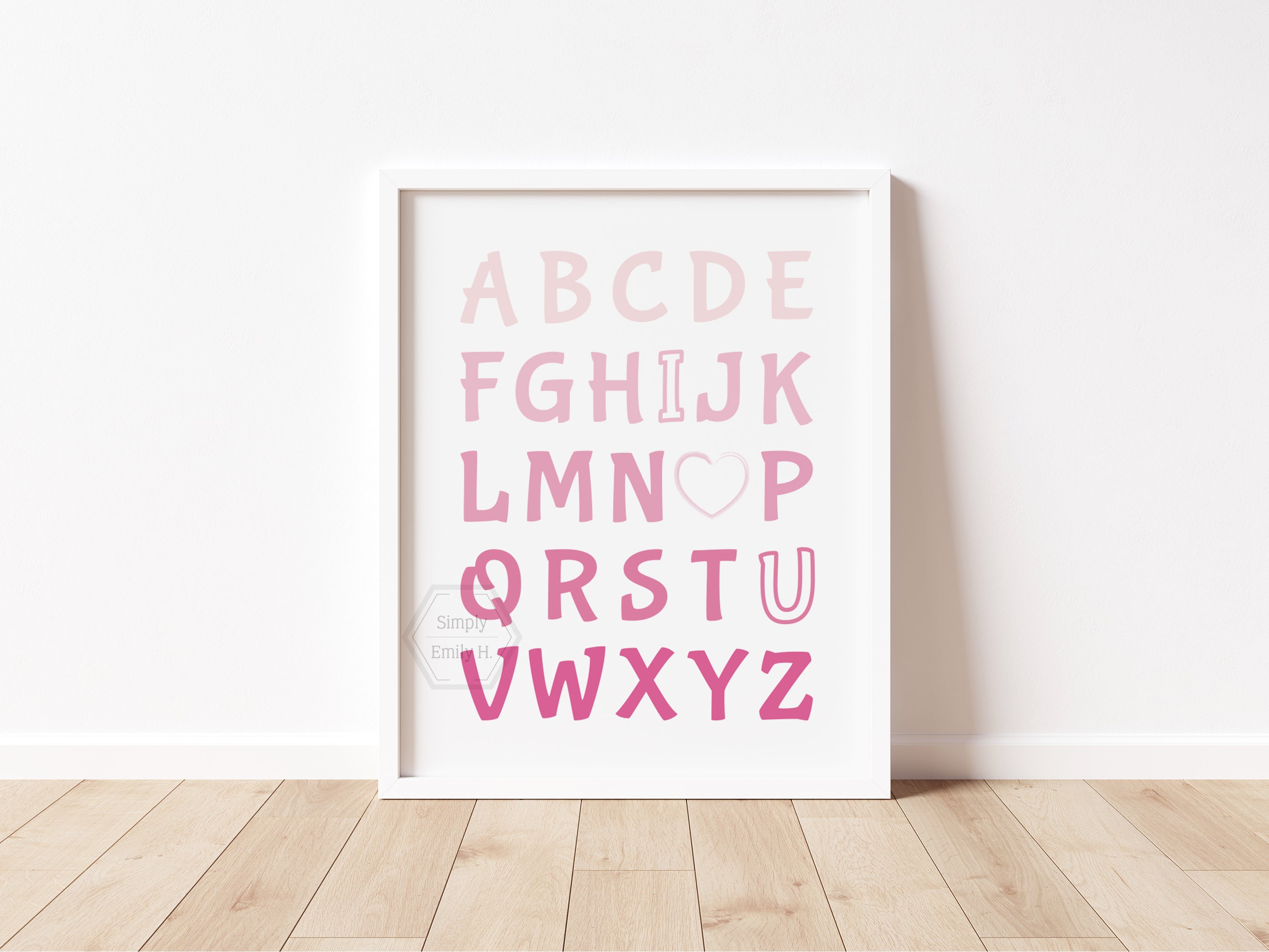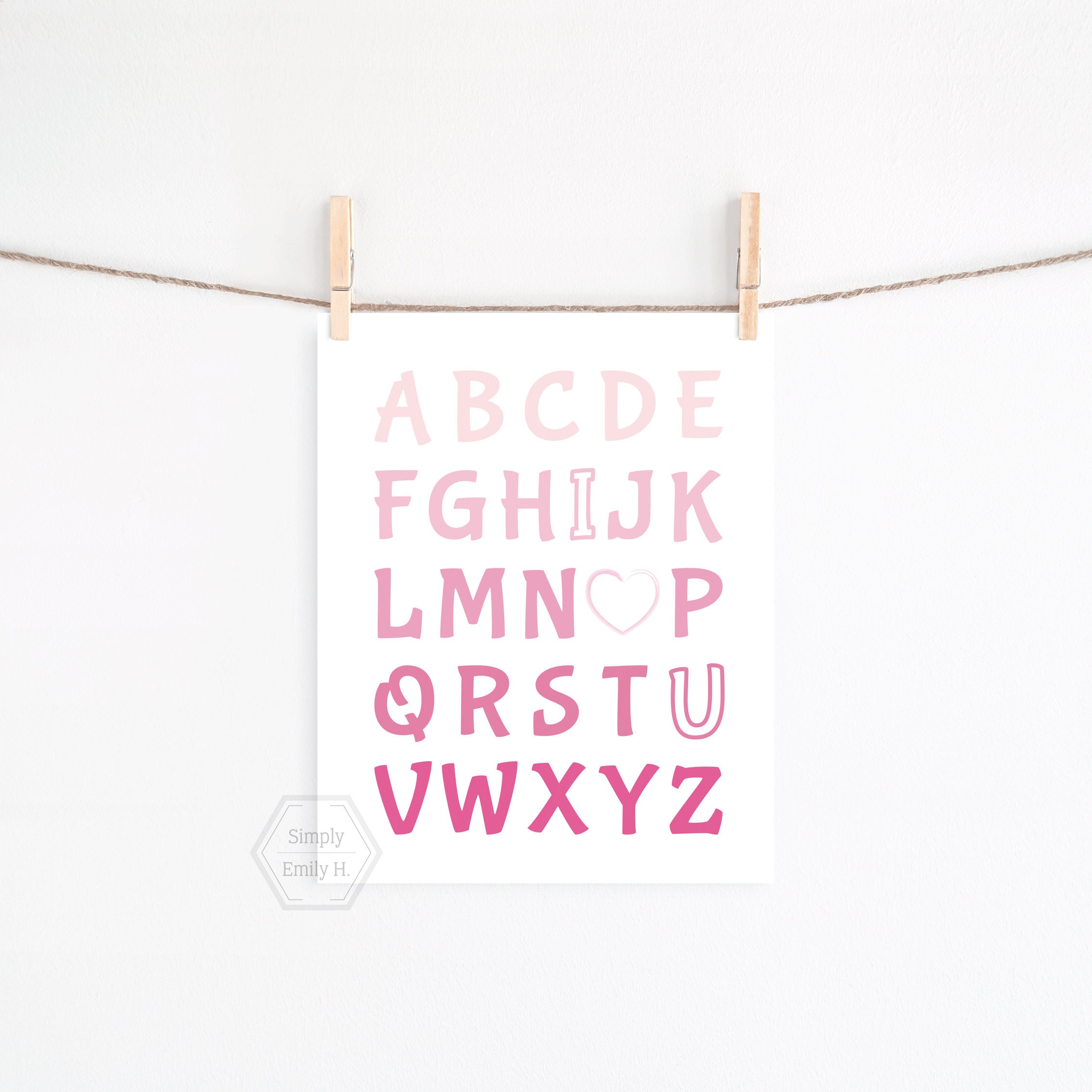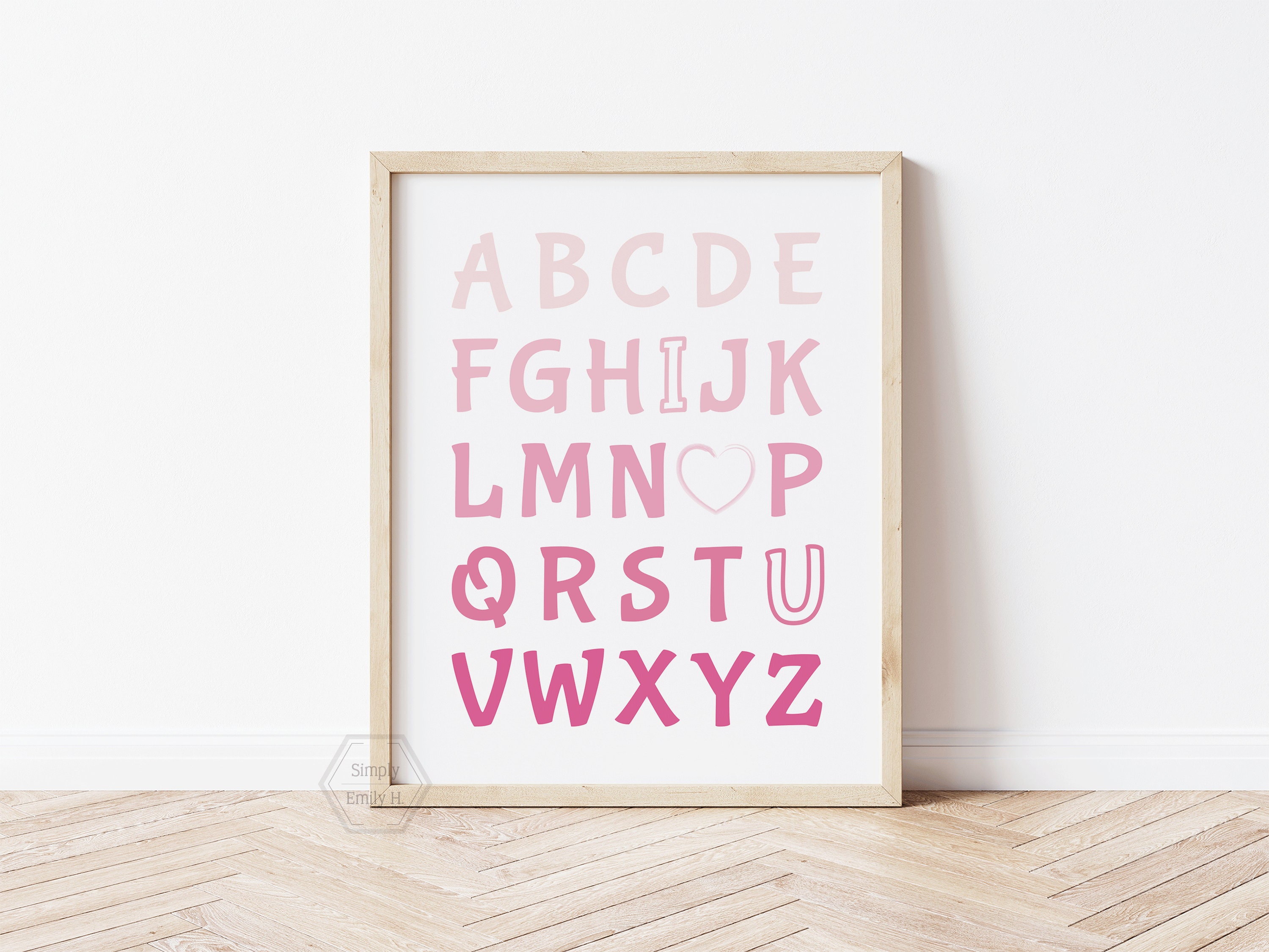 This adorable I Love You Alphabet print features a beautiful pink ombre design and is perfect for any kid's room, nursery, or playroom.