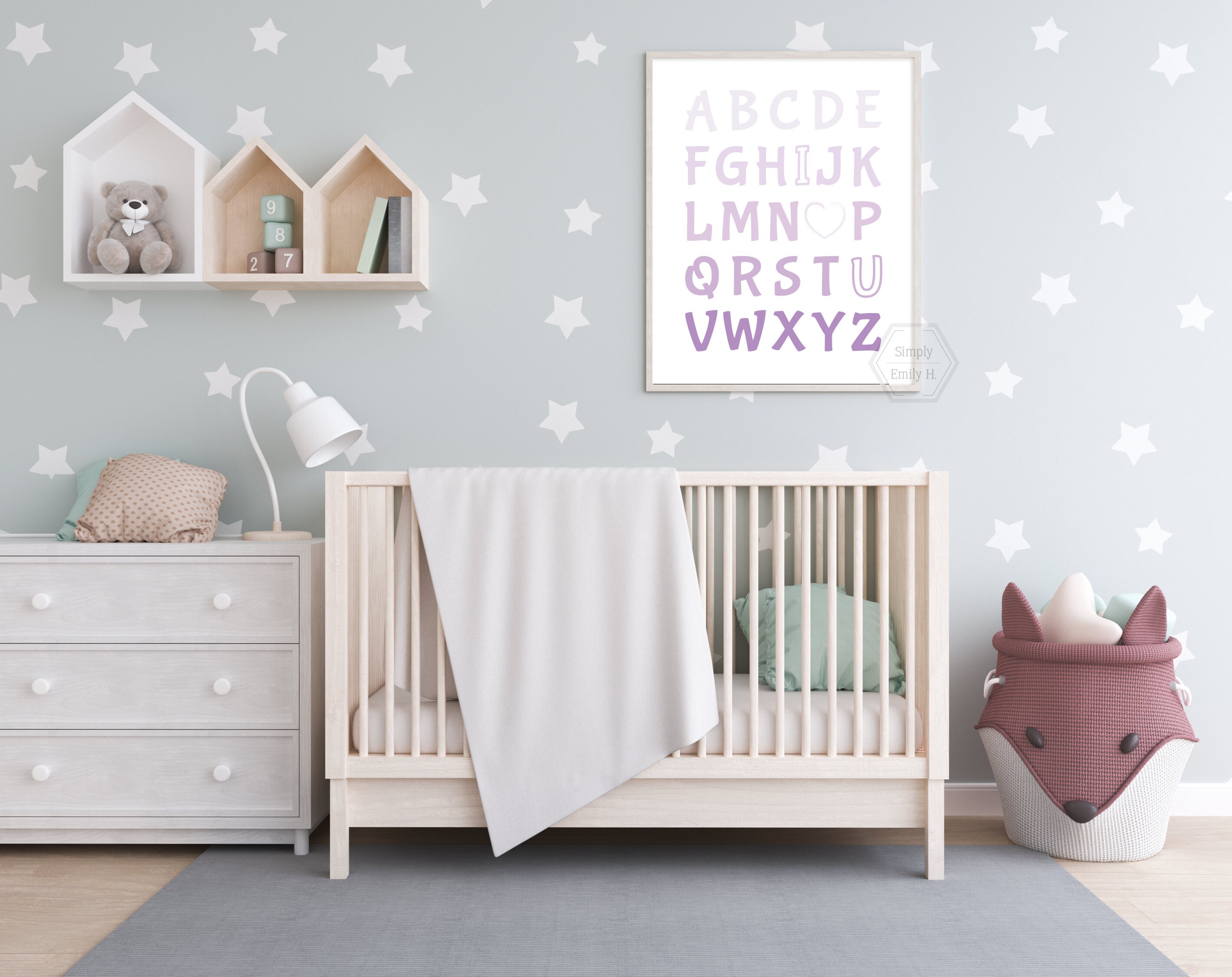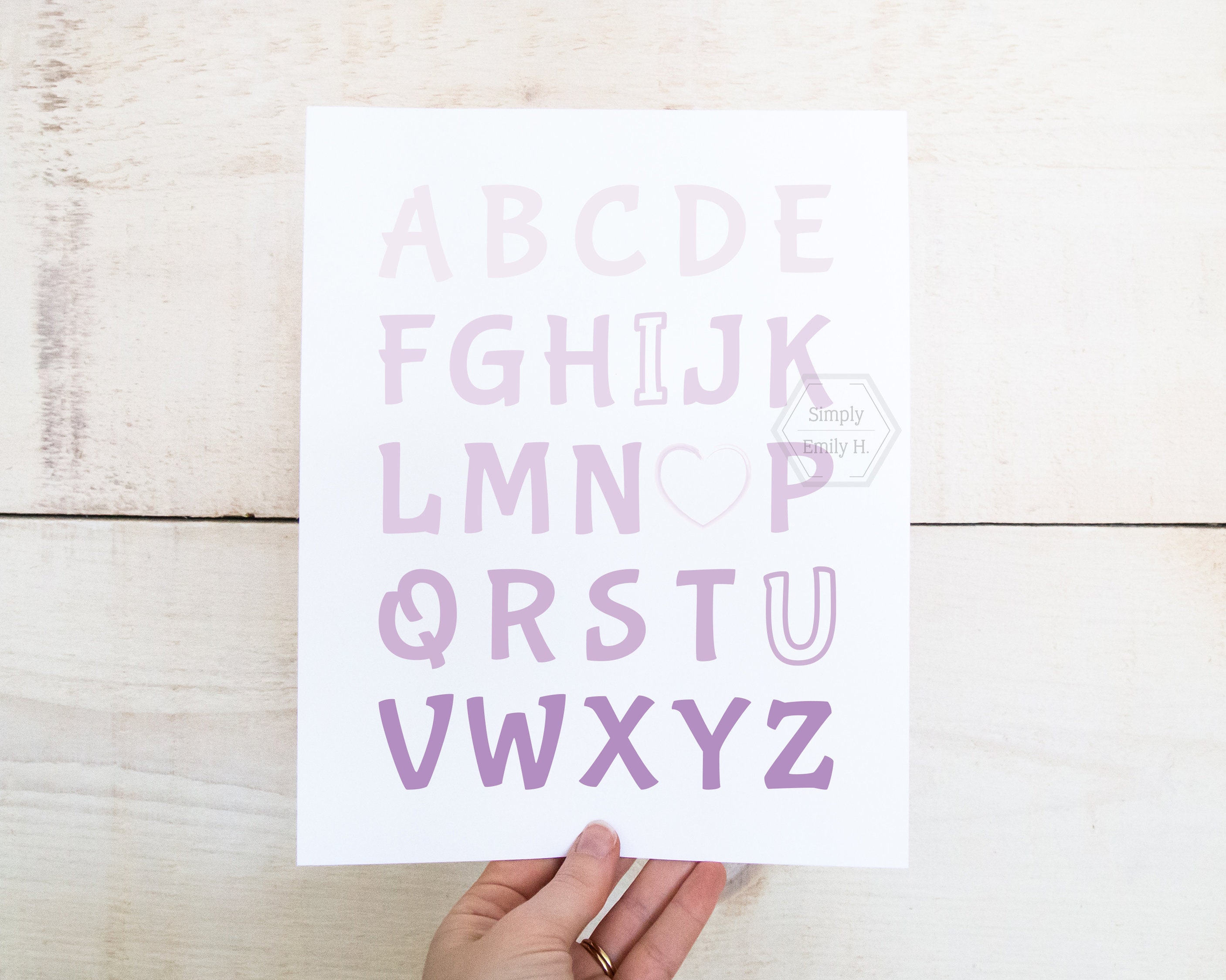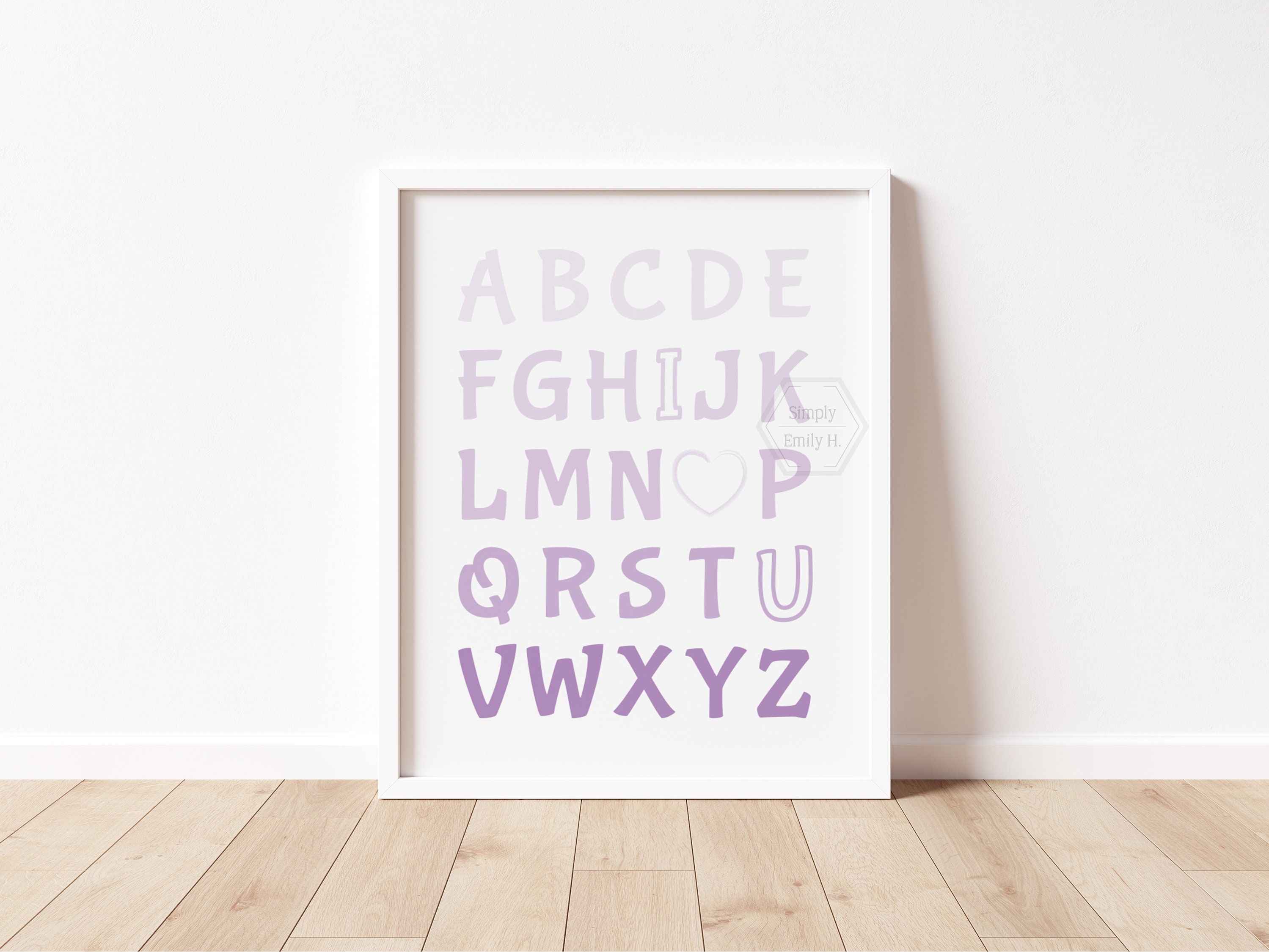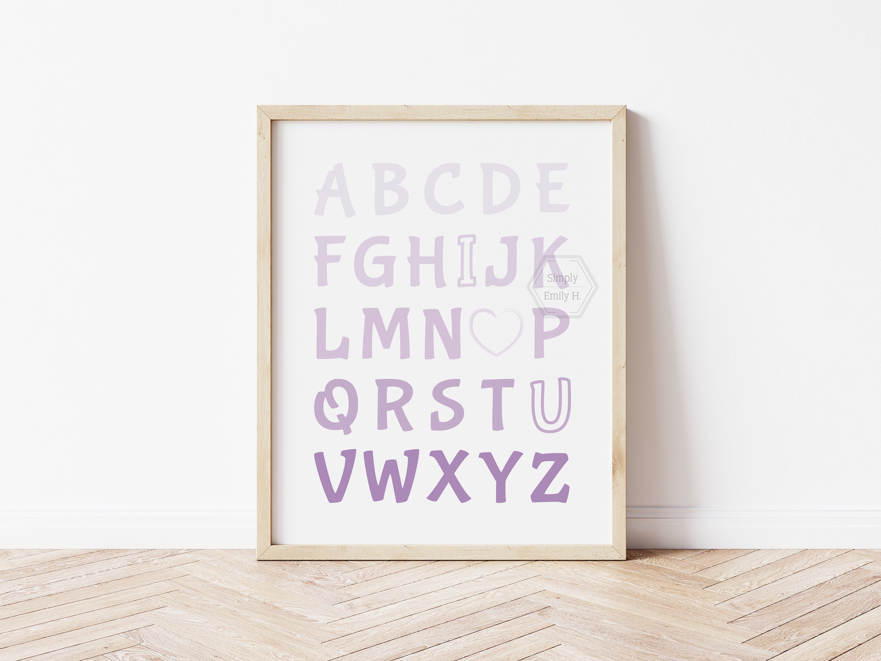 This adorable I Love You Alphabet print features a beautiful purple ombre design and is perfect for any kid's room, nursery, or playroom.