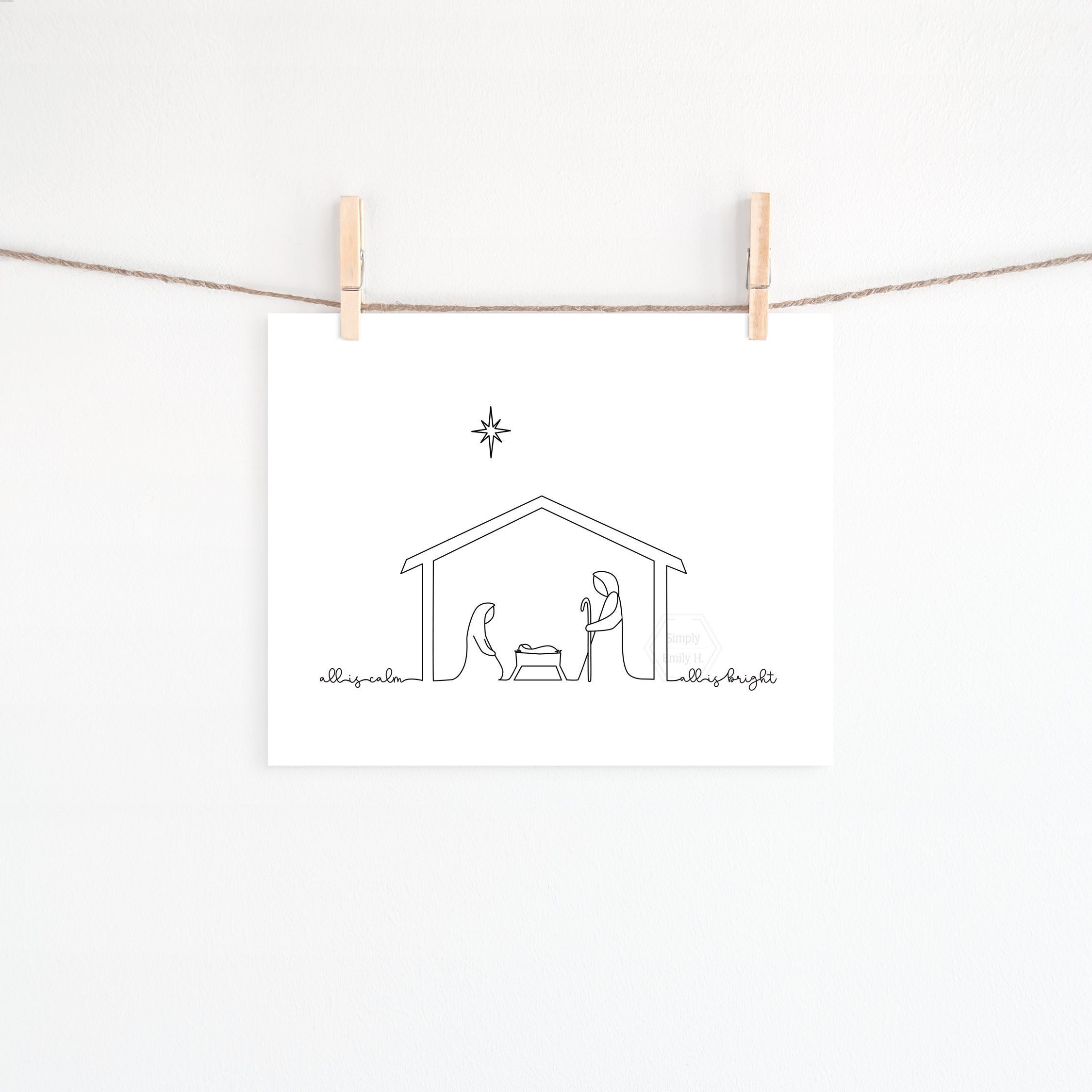 This print is also available as a ready-to-ship 5x7, 8x10, or 11x14 here: https://www.etsy.com/listing/1075047676/nativity-line-art-print-5x7-8x10-11x14