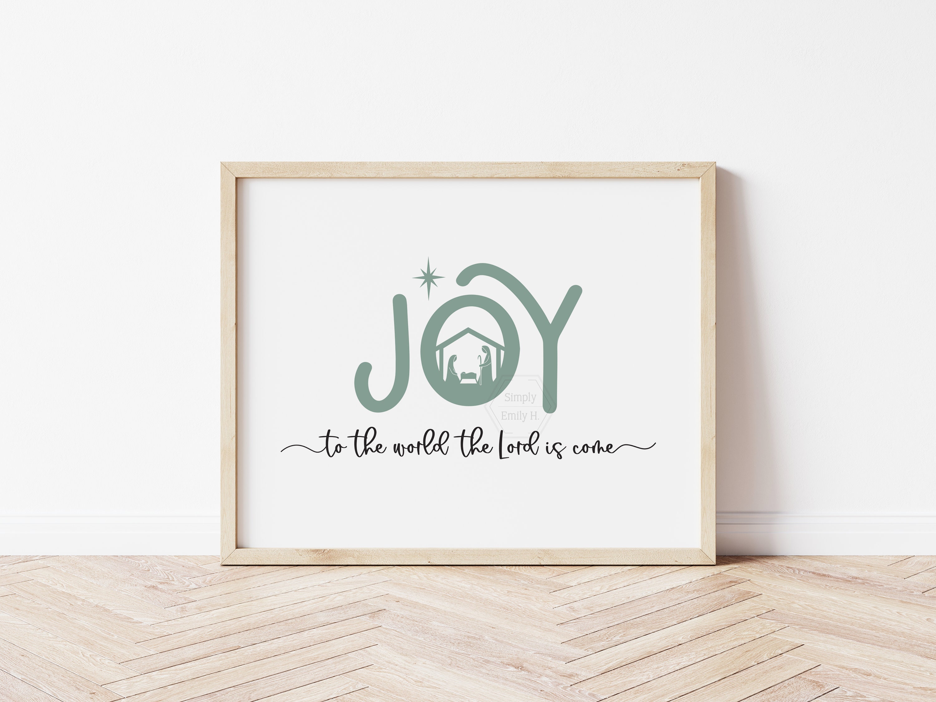 Celebrate the warmth of the Christmas season with this beautiful art print. This print features a nativity silhouette and the lyrics from Joy to the World, "joy to the world the Lord is come". It's available in black or green. This print is the perfect addition to your holiday decor, and displays beautifully anywhere in your home.