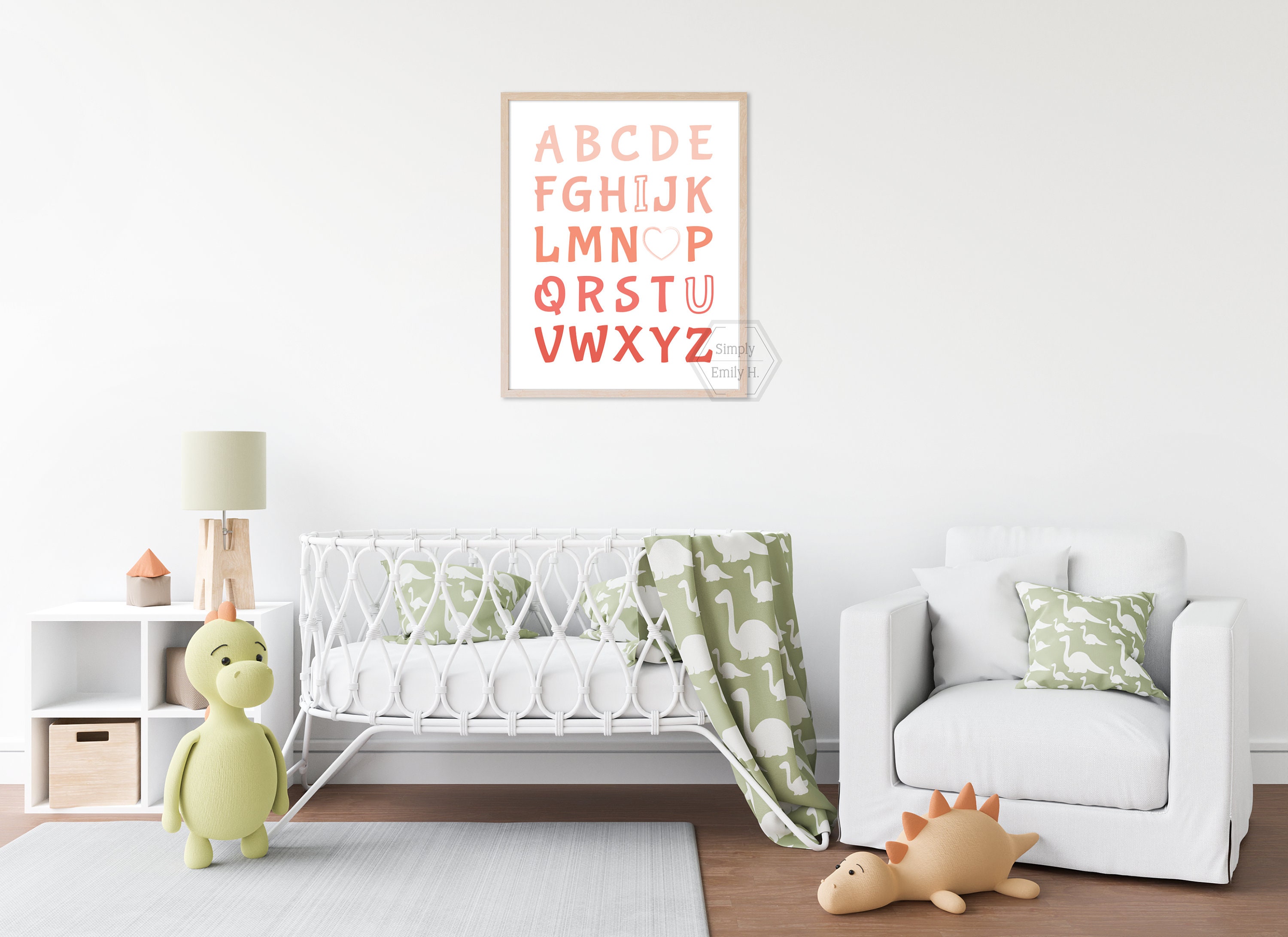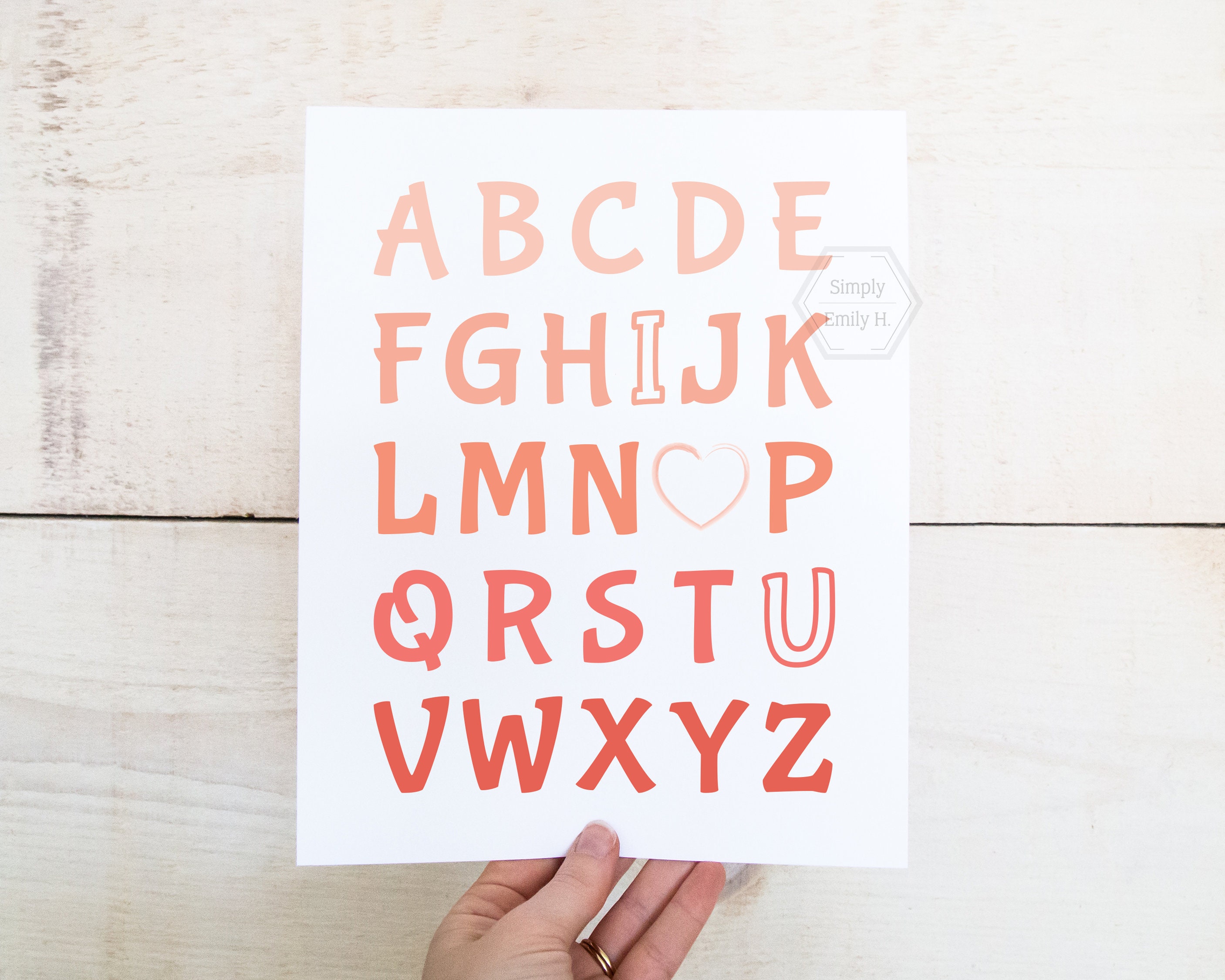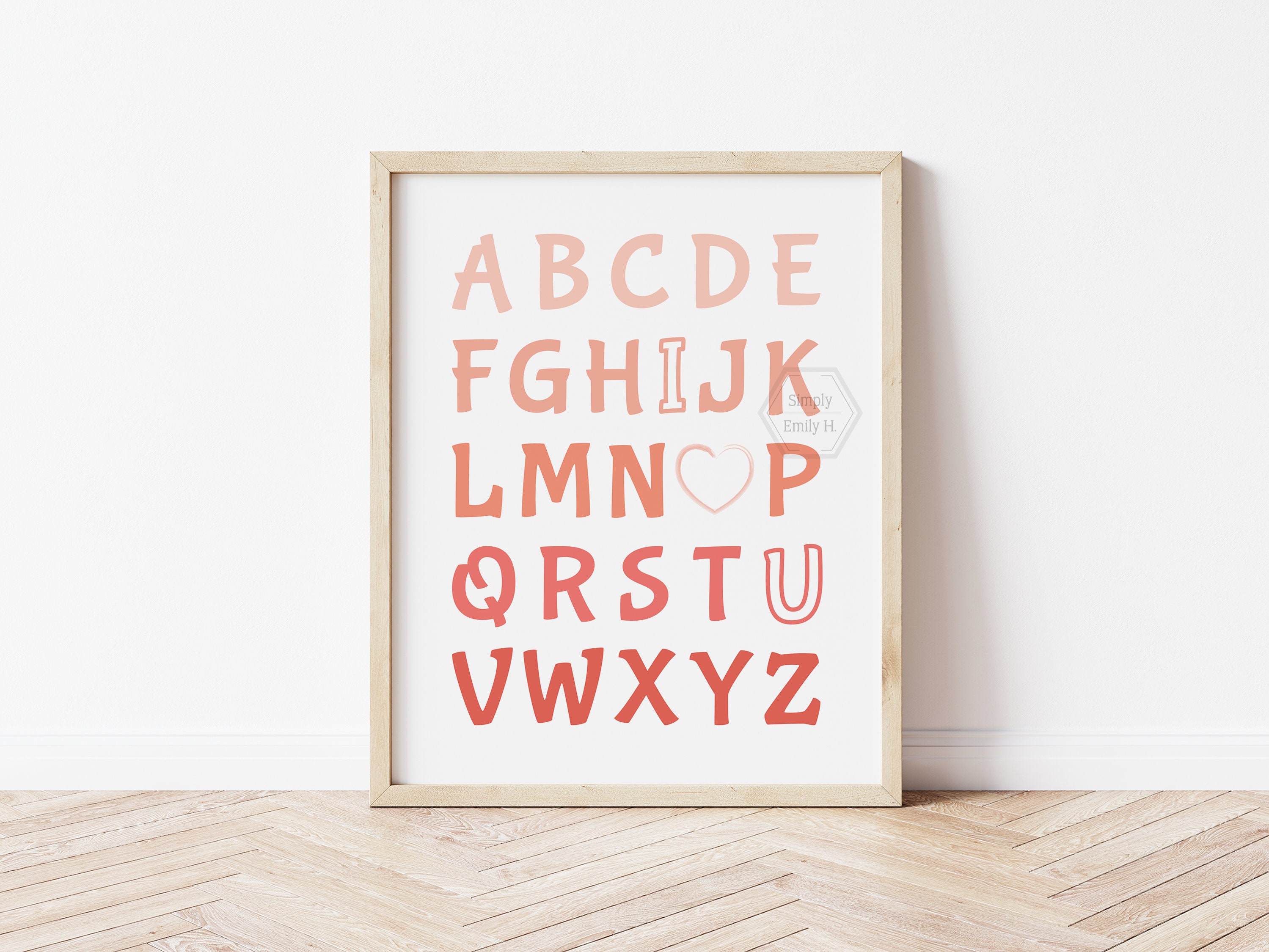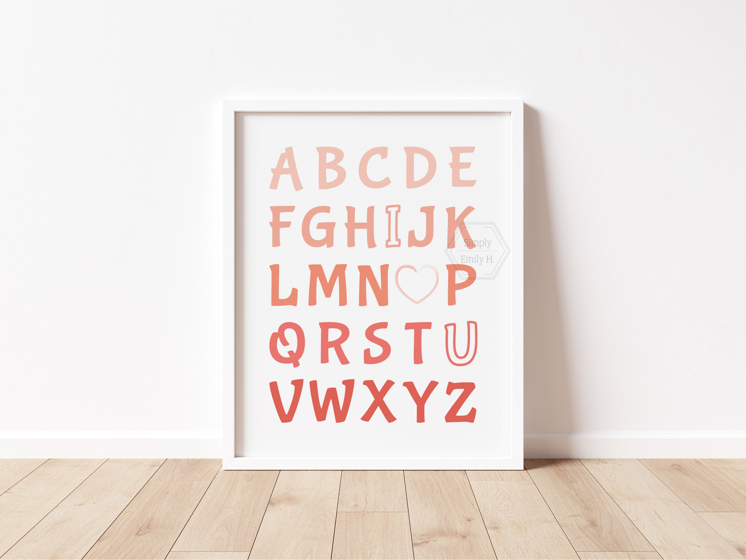 This adorable I Love You Alphabet print features a beautiful coral ombre design and is perfect for any kid's room, nursery, or playroom.