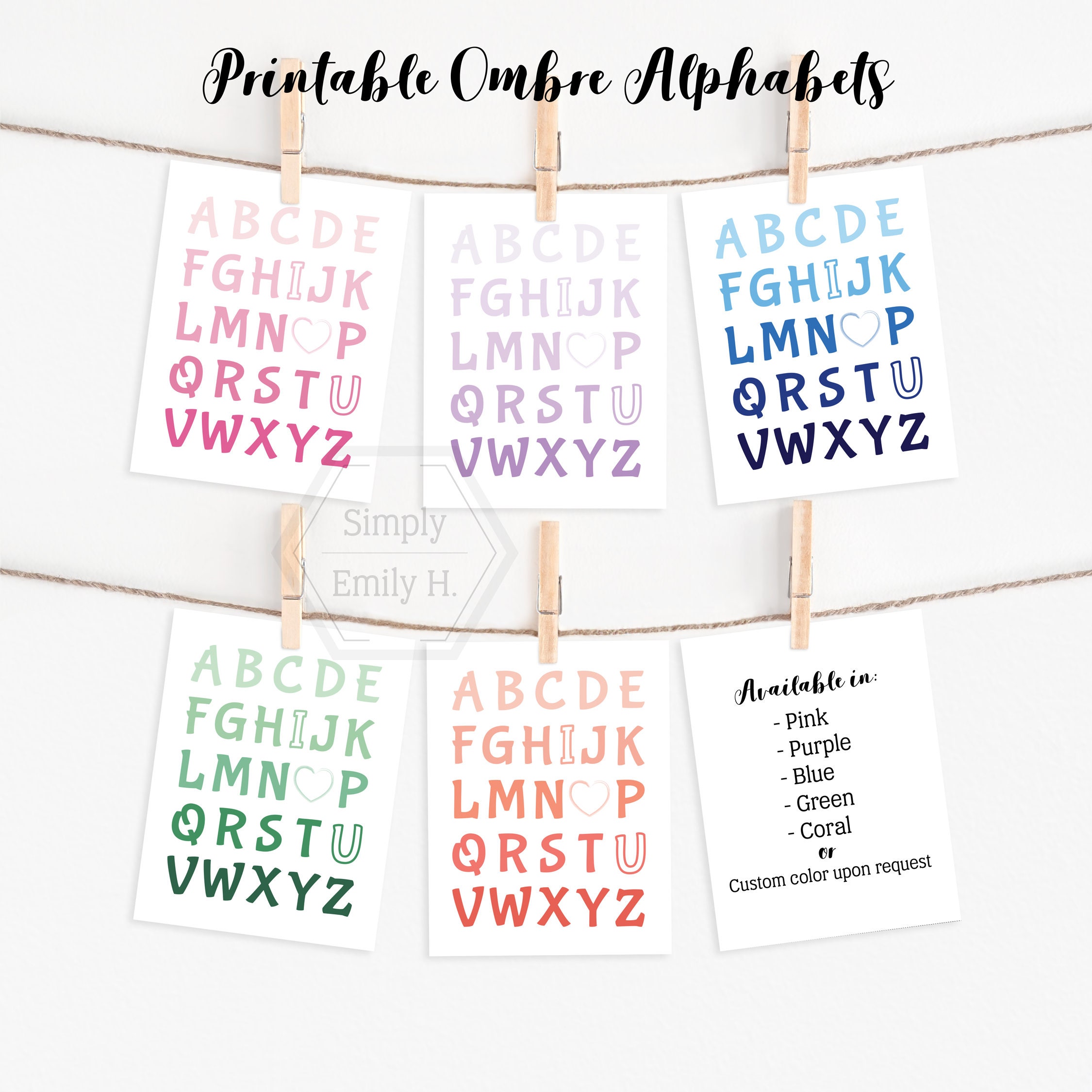 This print is also available in pink, purple, green and blue. You can find those prints in the printable Kid's Wall Art section of my shop: https://www.etsy.com/shop/SimplyEmilyH?section_id=14350158