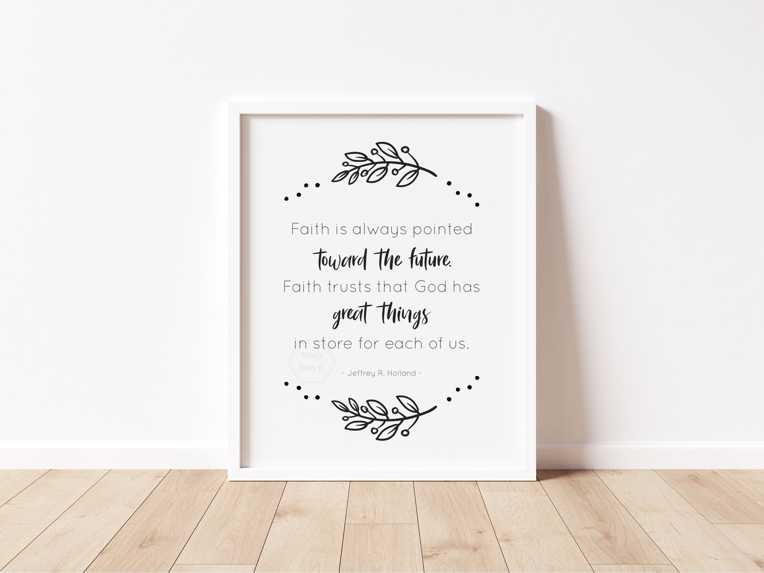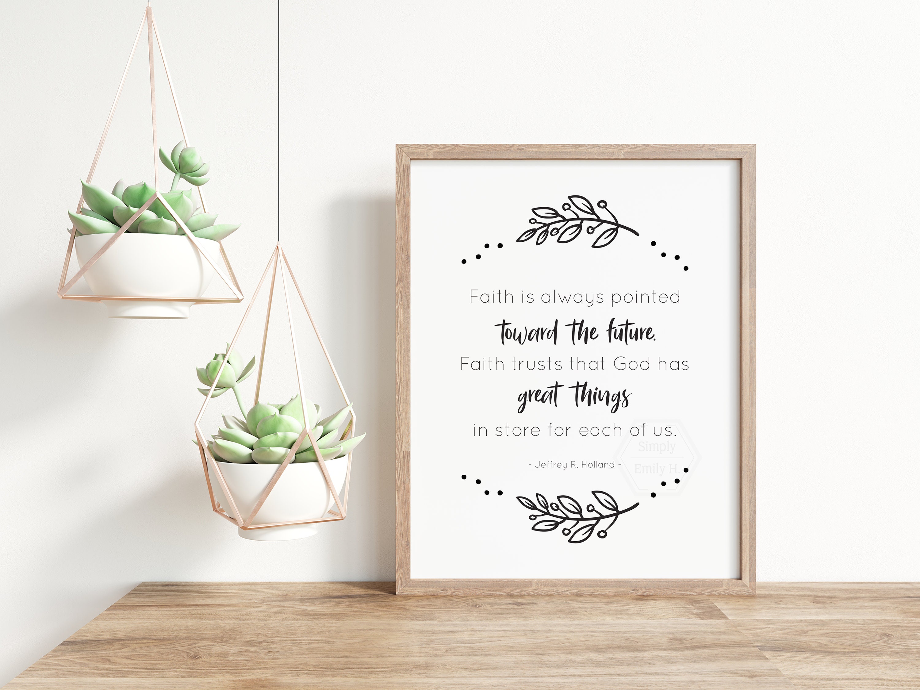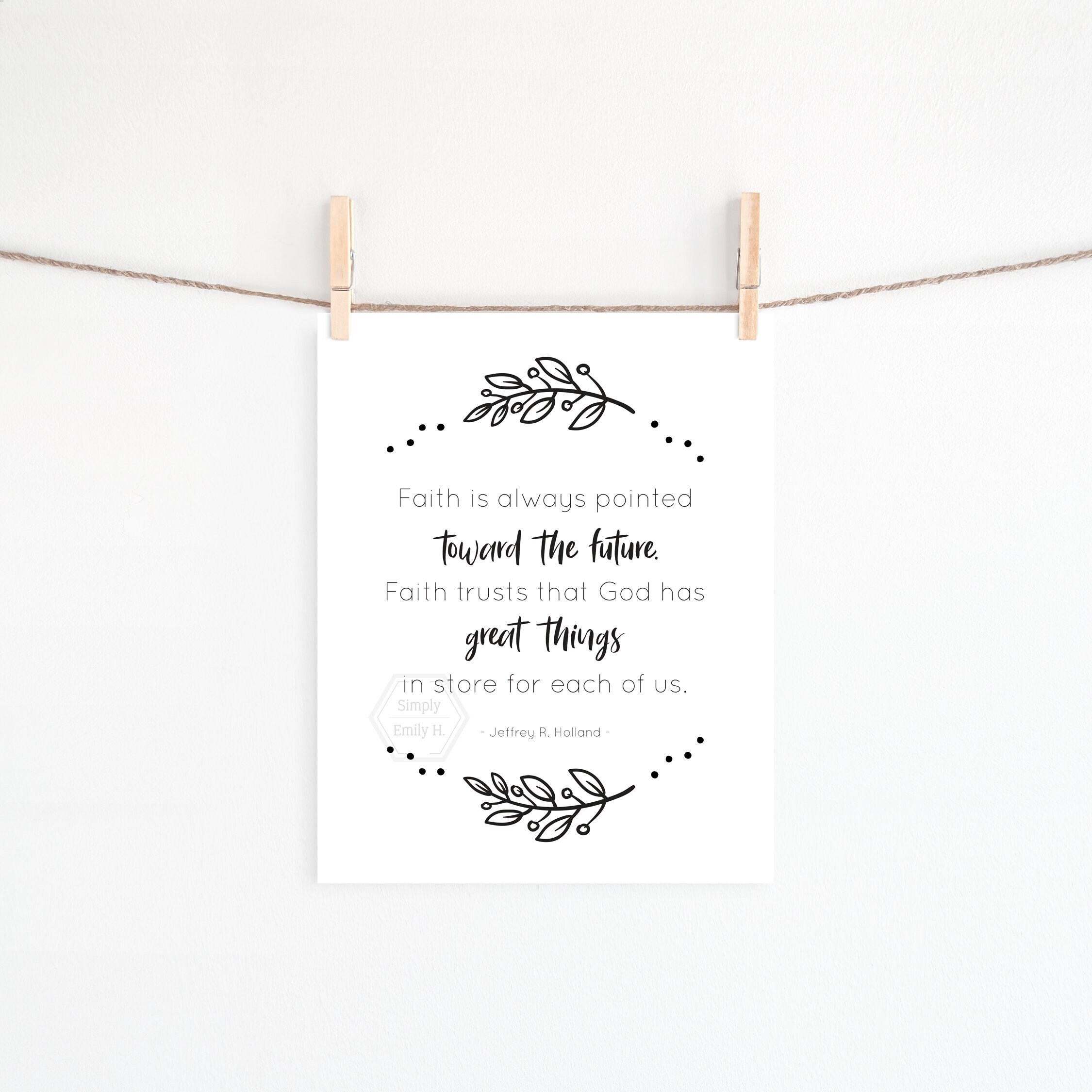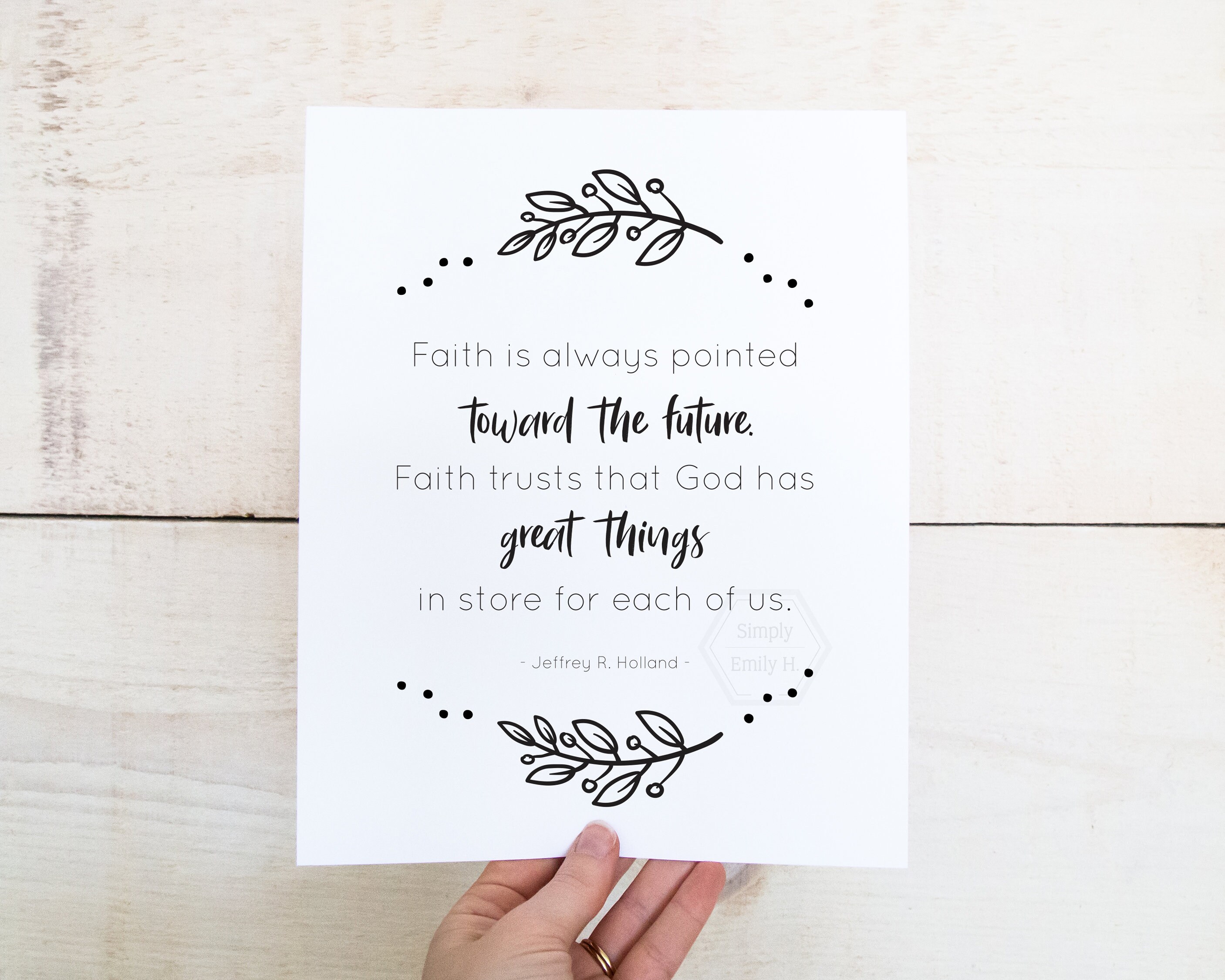 "Faith is always pointed toward the future. Faith trusts that God has great things in store for each of us." - Jeffrey R. Holland